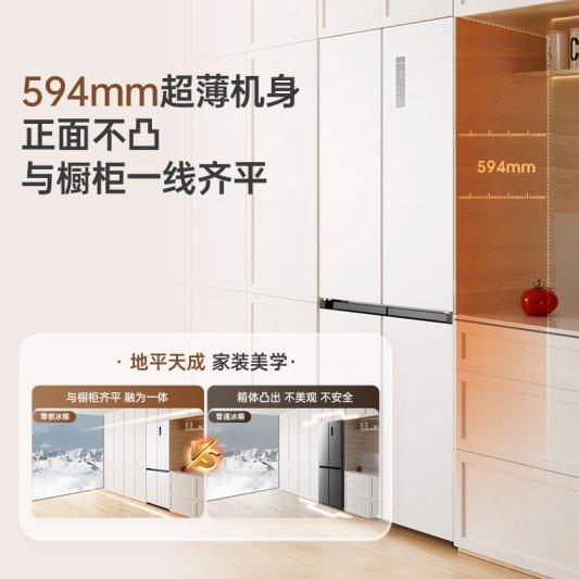 超薄平嵌焕发家装美学:以这款澳柯玛BCD-501WPHXZ十字对开门冰箱为例,它采用 594mm的超薄机身,机身厚度与常规厨柜厚度完美贴合,展现冰箱厨柜融为一体的嵌入美感,不仅占地减少10%,同时不显突兀,焕发地平天成的家装美学;采用底部散热,两侧背部无需留出散热空间,使整体美观大方,自然融入家居环境;其中还配备凸轴变轨铰链和大通量冷凝器,诠释了空间不留缝隙的家居美感;除此之外,零嵌冰箱对比传统冰箱,开门不受限,最大可开合100°,同时无缝隙的特点不会落灰,打理起来十分方便。