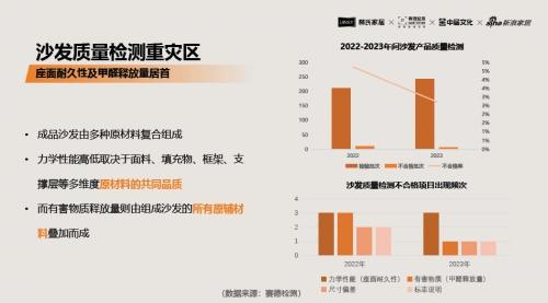 赛德检测在2022年至2023年期间,对全国知名品牌的454款沙发进行了全面检测。结果显示,沙发产品的质量问题主要集中在座面耐久性、甲醛释放、尺寸偏差和标注说明不清晰四个方面。赛德检测实验室主任张恩颂分析,原材料把控是影响沙发成品质量的关键。例如,座面耐久性取决于面料、海绵、弹簧和绷带等材质;甲醛释放问题与面料、框架及胶粘剂等材料相关。原材料导致的质量问题不仅影响使用体验,还可能威胁消费者健康安全。因此,消费者选购沙发时,应要求商家提供检测报告或明确相关参数。